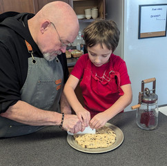 This year, in addition to my usual Zoom programs and group demonstrations, I started offering one on one and small group classes at the Bethany House, our monastery's guest facility. You can learn more HERE. Recently I gave baking lessons to the children of one of my former students: scones for her son and pizza for her daughter. It was their Christmas present, and we had a grand time! (Photos used with parents' permission)